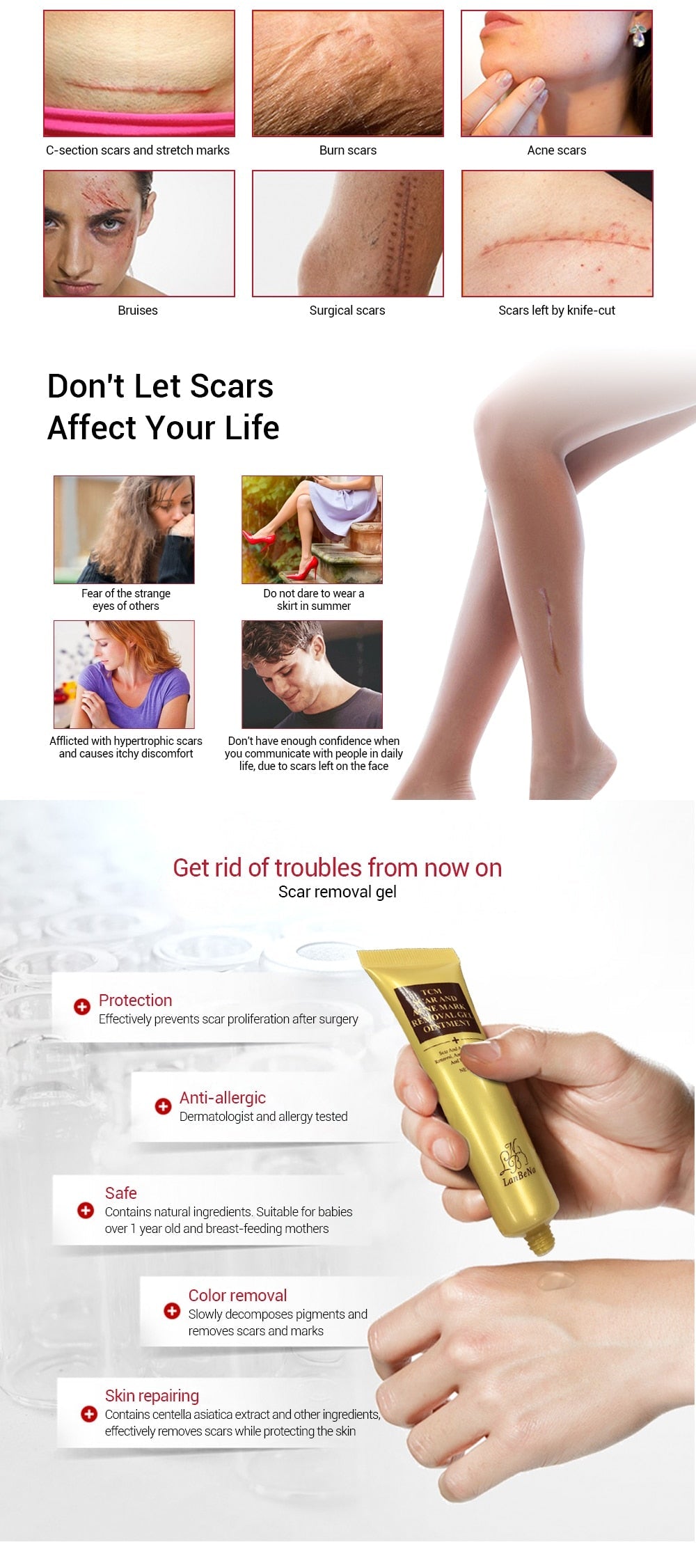 Effectively help to remove: burns, cuts, operation mark and the mark the influence the beauty.