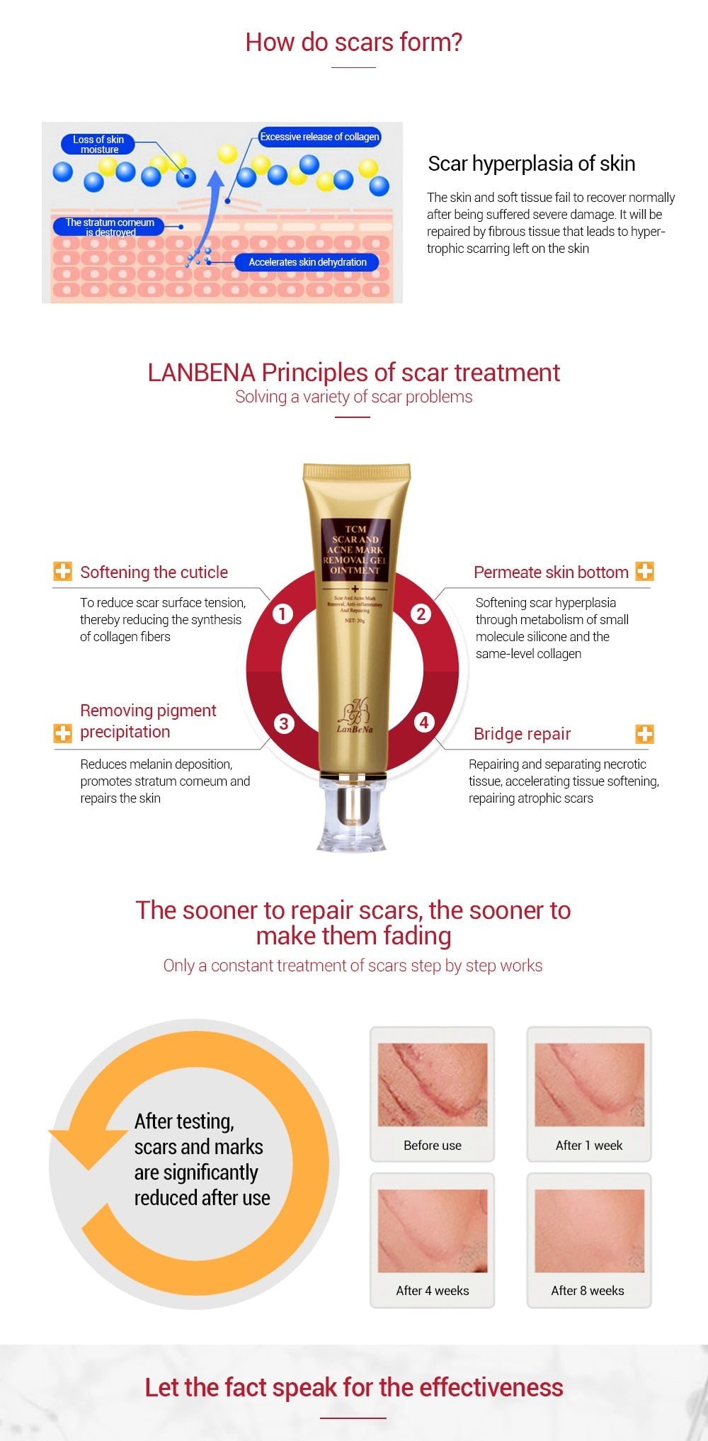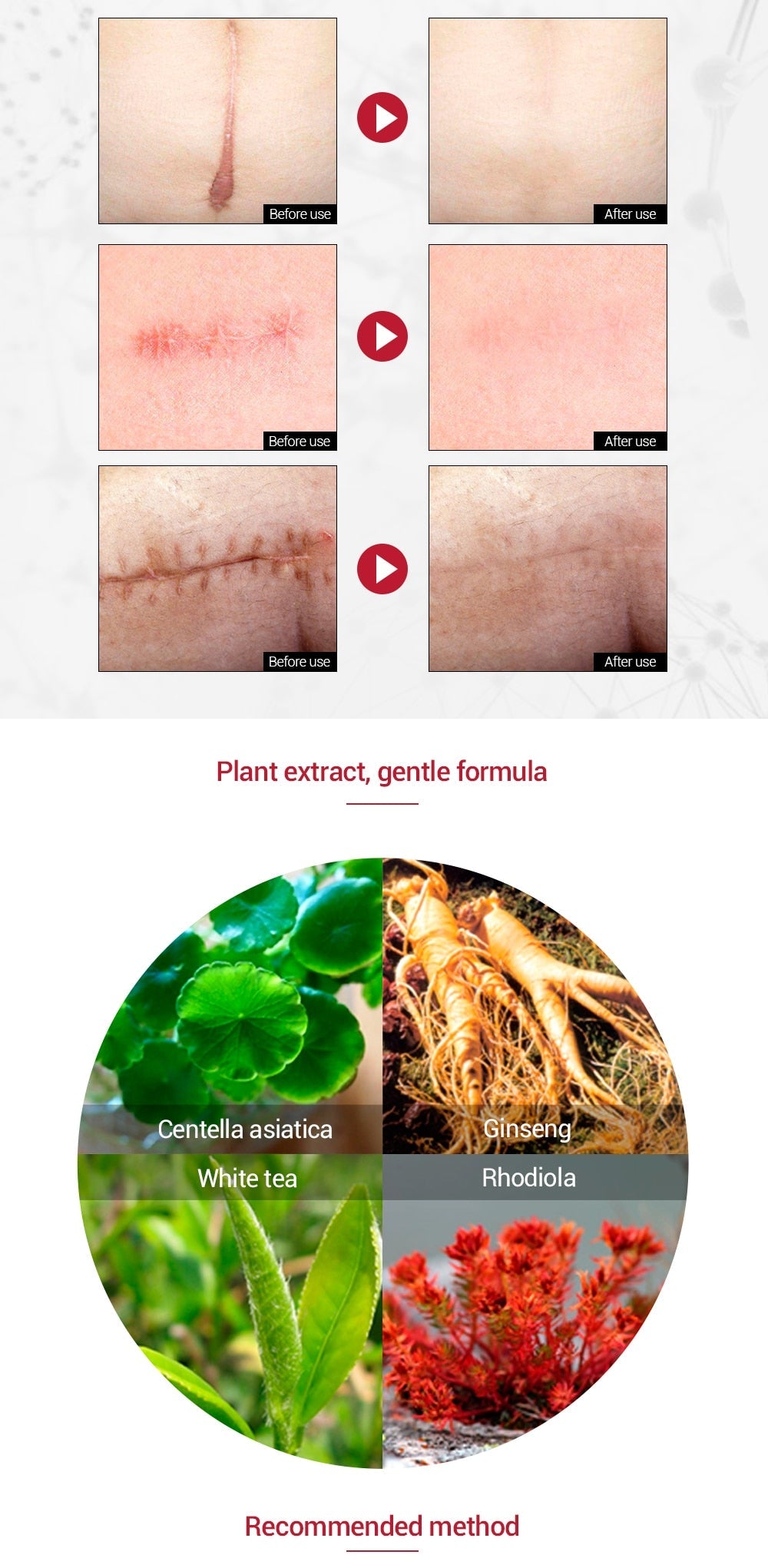 Effectively restore, reduce: pimple marks and other scars due to the skin damage; Cure the scar caused by operation or wounds