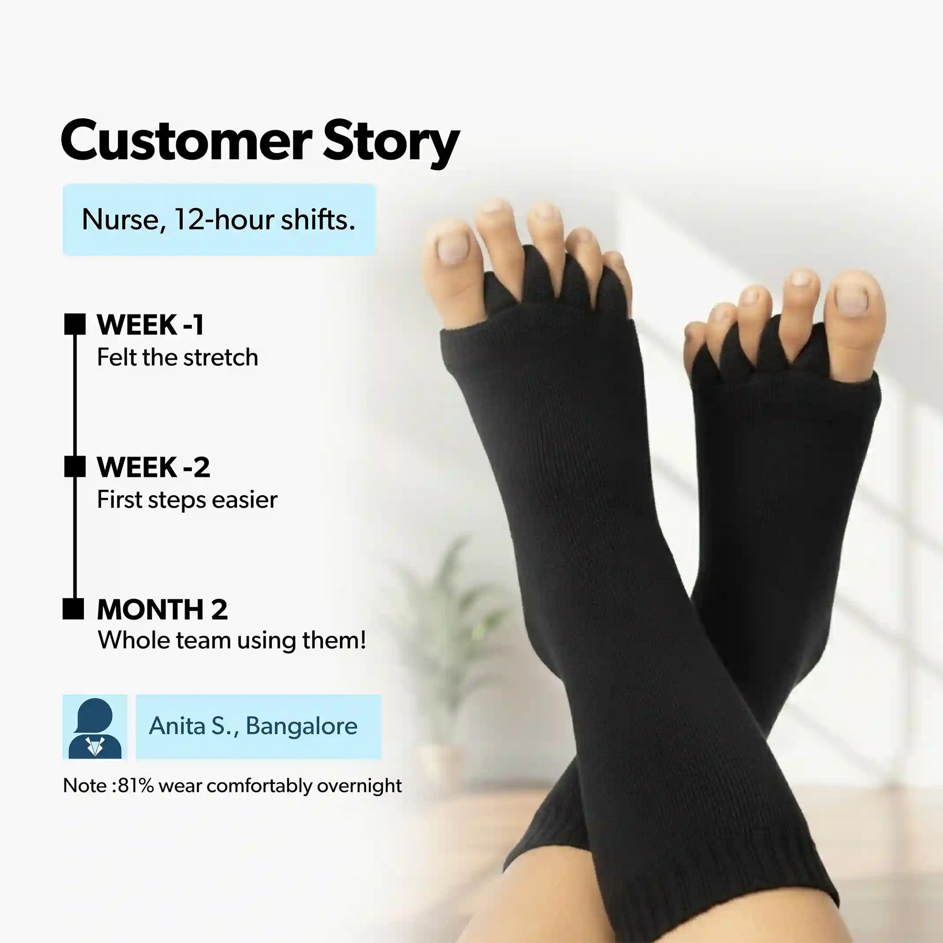 The Alignment Socks cater to individuals across all age groups. Whether you spend the day on the go, or simply seek comfort after a regular day, these socks are designed to rejuvenate your feet. By gently opening up the toes, they promote a more natural and relaxed foot posture.