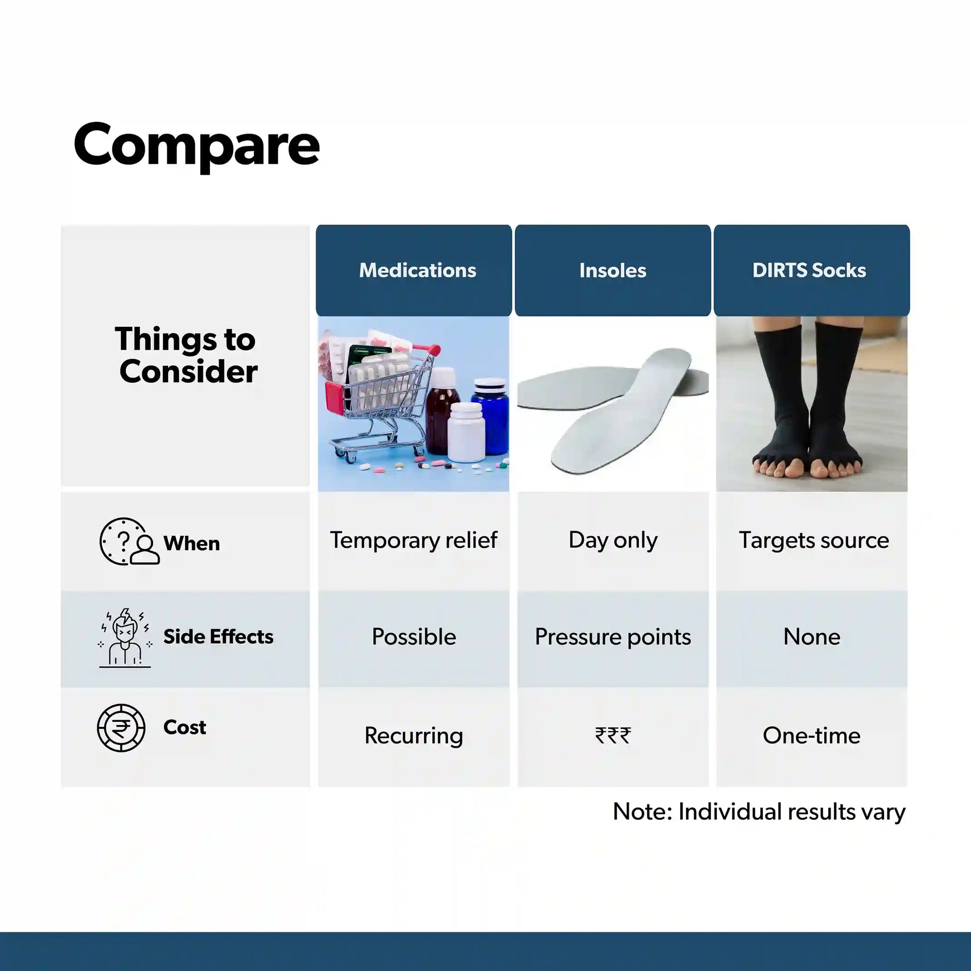 Regardless of whether you suffer from sore feet due to hammer toes, bunions, crooked toes or overlapping toes, you deserve relief. Foot cramps can often be associated with plantar fasciitis or improper toe alignment, and DIRTS® Foot Alignment Socks have been designed to change that.