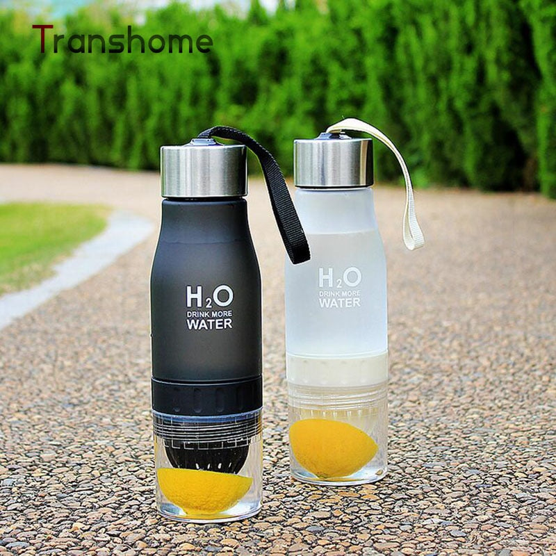 This ingenious H20 Fruit Infusion Water Bottle is specially designed to keep you hydrated in the most delicious way! It's the perfect companion for all your sports, yoga, gym and outdoor activities! Make your own fruit infused water and enjoy deliciously flavored beverages without all of the artificial colors, added sugars and preservatives! Simply fill the water infuser with any of your favorite fruits, such as strawberries, lemons, limes and oranges or you can try things like mint, cucumber and even ginger. The flavorful combinations are endless! Just unscrew the bottom cup of the juice water bottle, flip the bottle onto the top cap, place a piece of your fruity preference onto the juicer or into the cup and replace it. Shake it up and your tasty, fruit infused water is ready to enjoy! This water bottle is made with eco-friendly, BPA free, FDA food grade silicone plastic that's perfectly safe for your health and it holds 650ml of liquid.