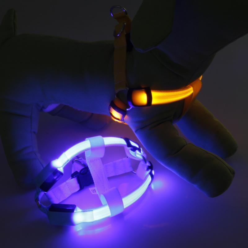 Safety and fashion come together in LED Dog Harness. The harness that offers attractive design by day and safety lighting at night. LED Dog Harness is lightweight, durable, fully weather-resistant and visible up to 1,000 feet in the dark (in steady or blinking mode).