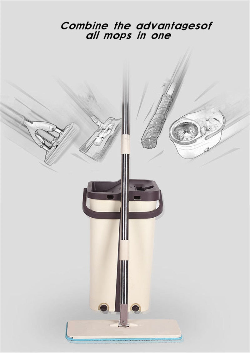 HAND-FREE Water and Dirt are squeezed out automatically with a wringer on itself. Absolutely Hands-Free! Hook the pockets on the microfiber to the fork on the mopping board so the wringer can function well! Effectively cleans up dry dirt, dust, hair, and other messes. Super absorbent for liquid. Safe for hardwood floors. Poles are built with high strength stainless steel and durable plastic. Lightweight but very durable. Mop head can be tilted and stand on its own taking very tiny space.
