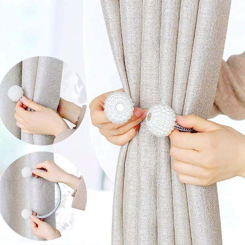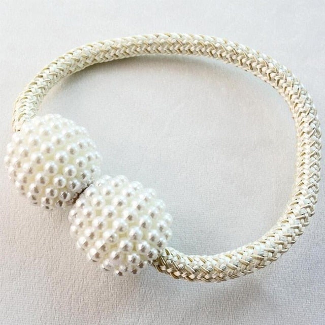 Pearl Curtain Tiebacks with Strong Magnetic Clips, 2 pcs
