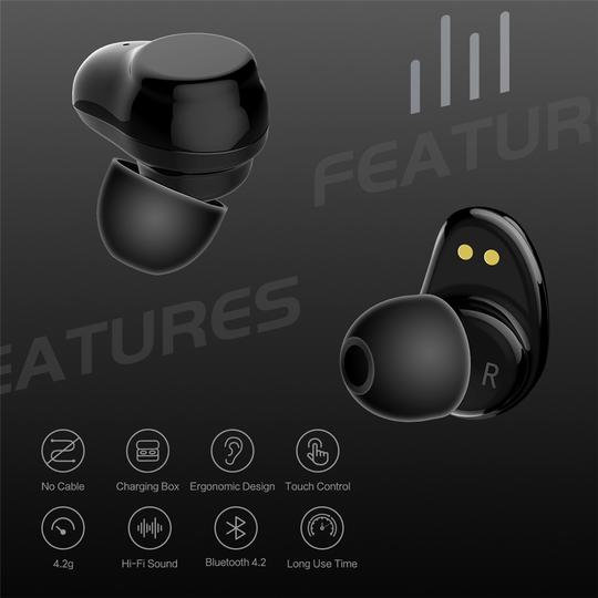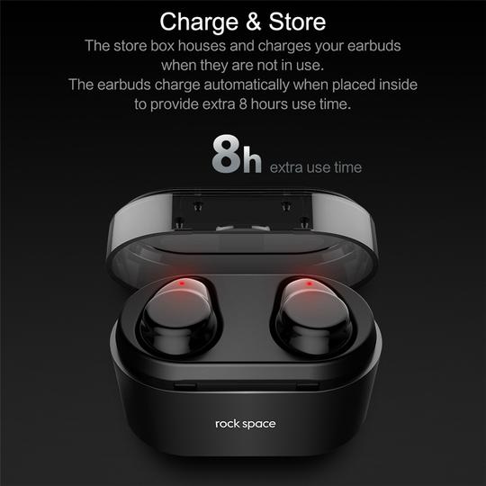 Blending elite design, craftsmanship, and audio quality, the ROCKSPACE True Wireless Earbuds redefine wireless listening, allowing you to enjoy your music, stay effortlessly connected, and say goodbye to tangled cables. These innovative earbuds put your music at your fingertips, answer your incoming calls, and integrate seamlessly with your voice-activated digital assistant. If you're an active music lover, you'll love these truly wireless earbuds.