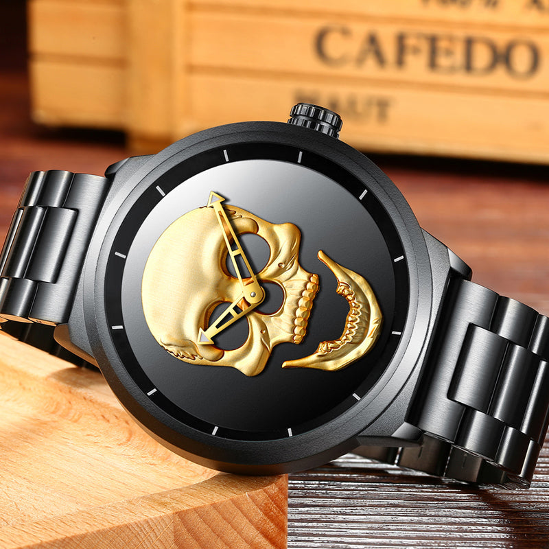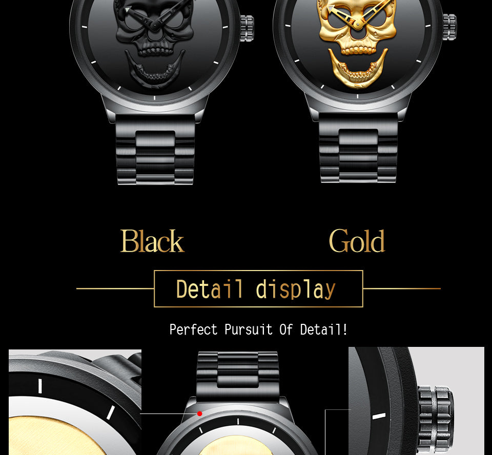 Gold or black, choose the color that best suits you ! The SKULL WATCH is perfectly waterproof up to 100 ft (30 m) deep.